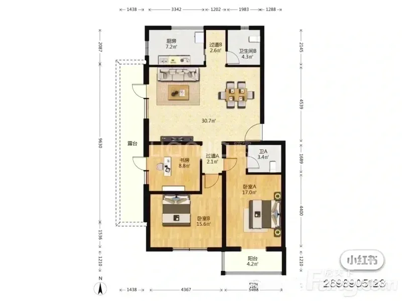 澜花语岸南北通透三居室,117平仅349万