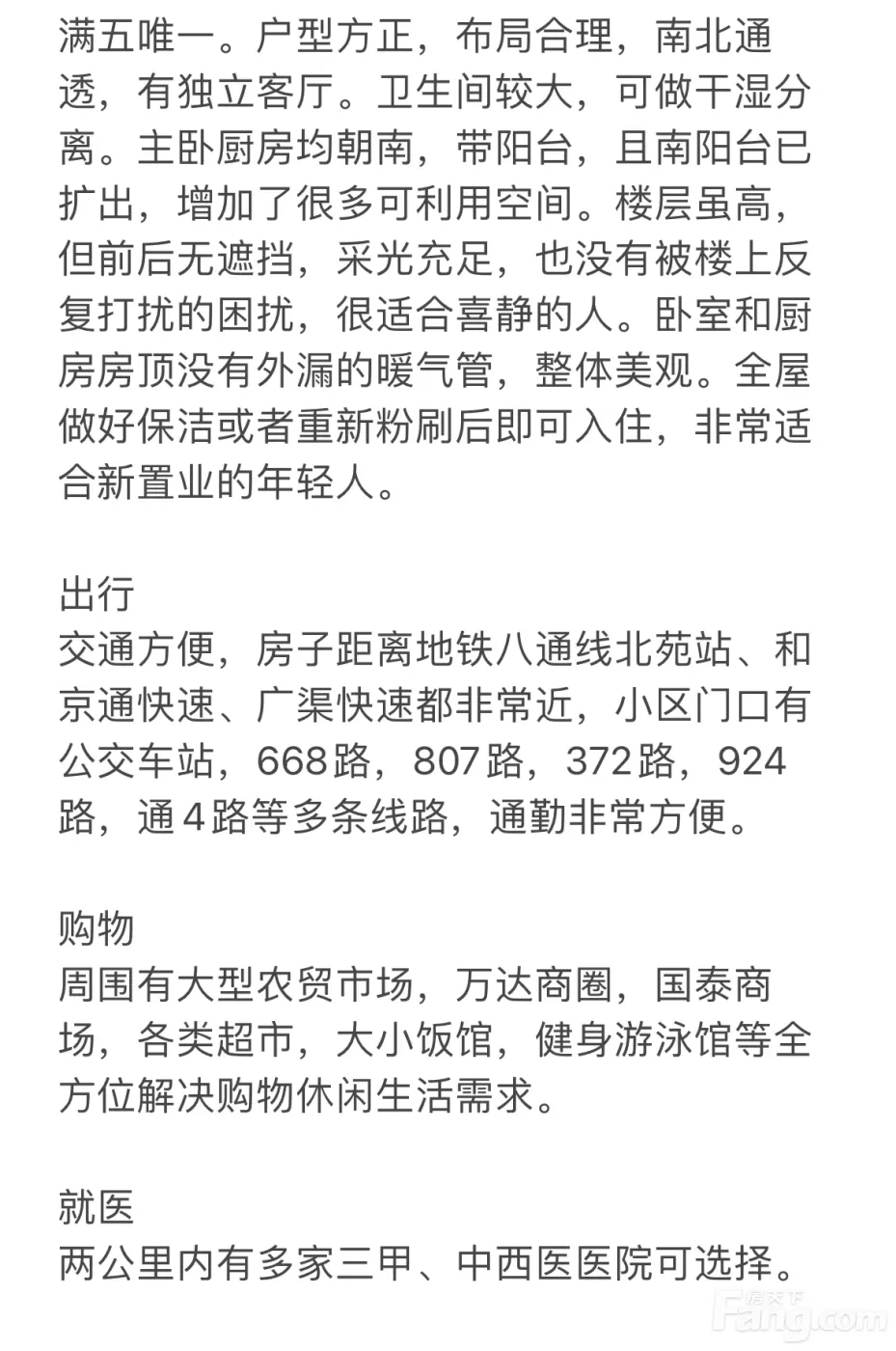 这套位于通州杨庄小区的65.53平米两室一厅一卫房源,处于通州北苑地段,地理位置优越,交通便利。房屋朝南北朝向,采光充足,通风良好,居住舒适。整套房源装修精美,简约风格,家具家电齐全,拎包即可入住,省心省力。客厅宽敞明亮,卧室宜居舒适,卫生间干净整洁,厨房设施齐全,满足日常生活需求。小区环境优美,绿化率高,物业管理完善,安全有序。周边配套设施齐全,生活便利,超市、餐饮、医疗等应有尽有,满足日常生活需求。附近公园、健身设施丰富,居民休闲娱乐的好去处。此外,周边交通便利,公交线路多,出行方便快捷。总体来说,这套房源是一处宜居的好选择,无论自住还是投资都是不错的选择。欢迎有意向的买家前来看房,机会难得,赶快把握!