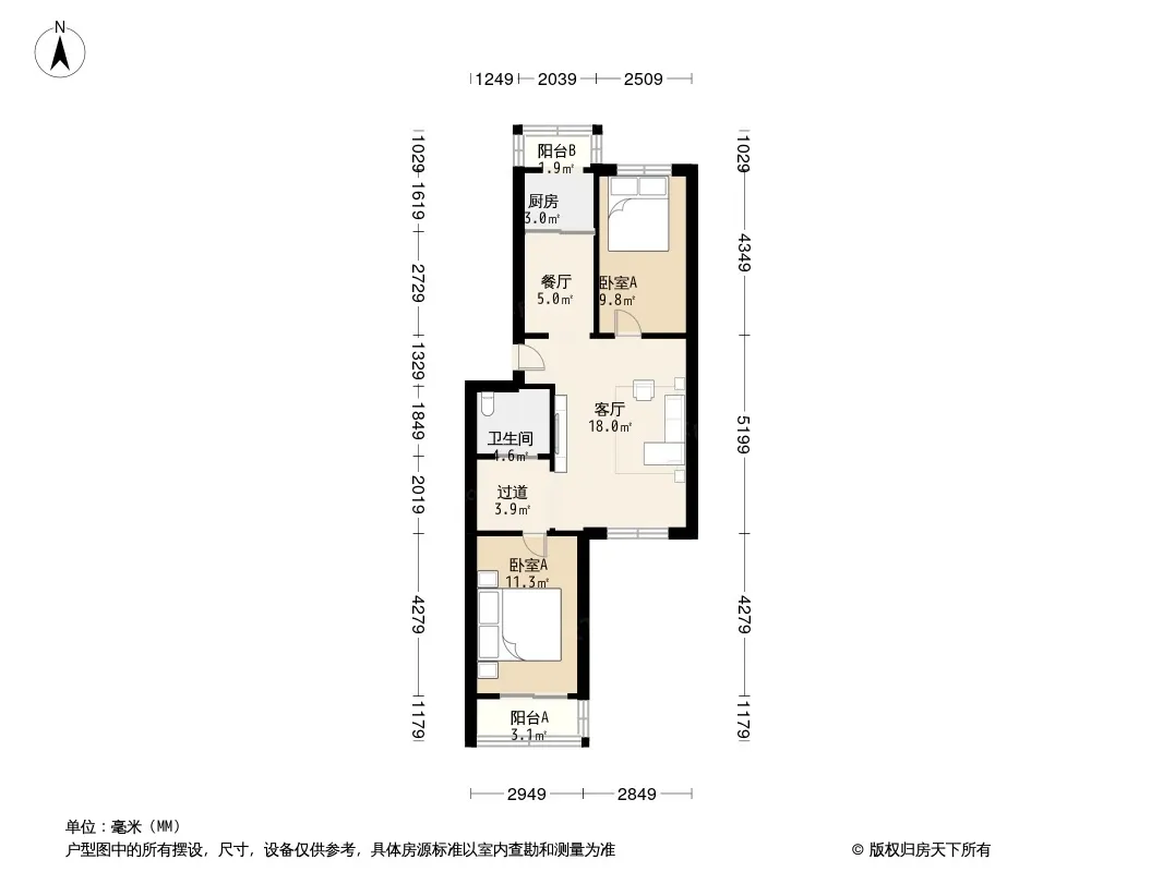 户型齐全,主打户型方正,客厅朝南,双阳台二居