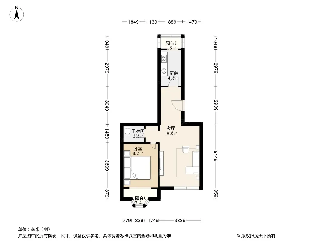 户型齐全,主打明厨,客厅朝南,双阳台二居
