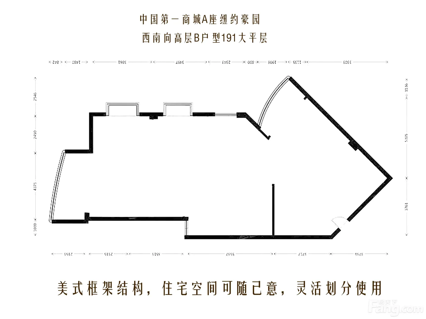 中国第一商城户型主要有146平-191平的双卧朝南的三居 、146平-146平的双阳台的二居 、370平-370平的明卫,客厅朝南,双阳台,主卧朝南的五居 。