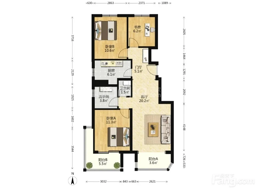 3室1厅2卫