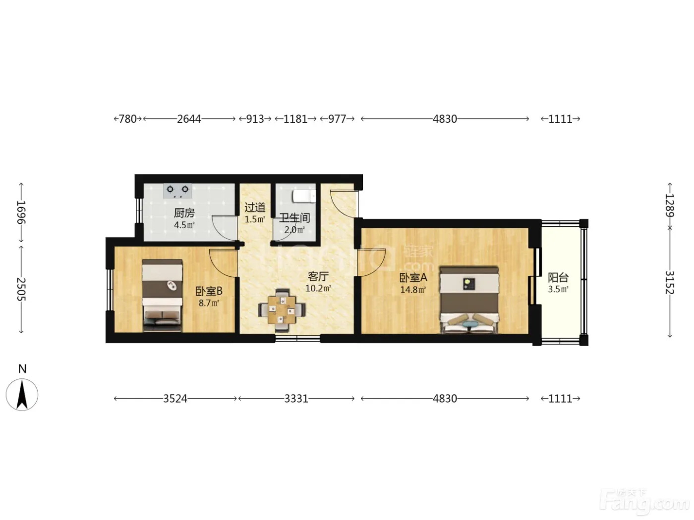 亚运村60m小两居 精装婚房 客厅带窗 **书包