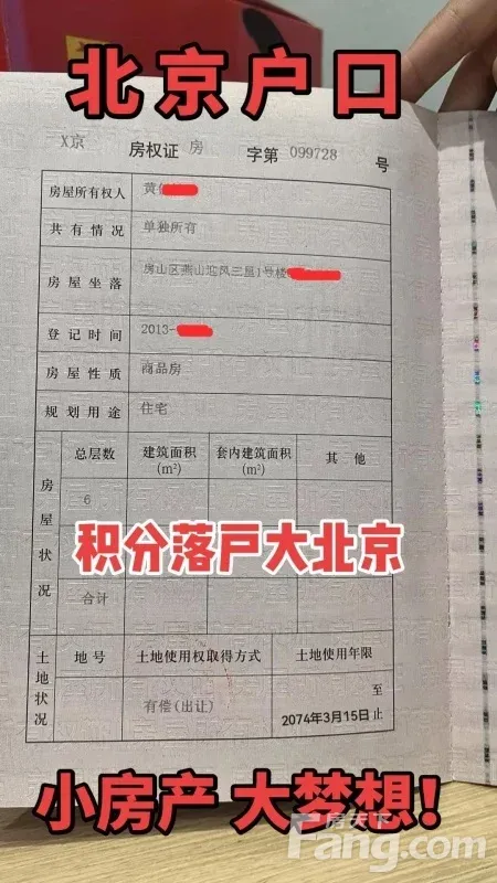 业主个人出售积分**北京户口房产1套