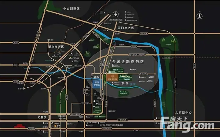 地铁线路:3号线12号线平谷线S6号线“东坝站” 物业位置:北京市朝阳区金盏金融商务区(东高路与东坝大街交叉口) 交通状况:“五横四纵”高效路网,紧邻机场二高速,距离首都机场7公里。四轨交汇,距离地铁3号线楼梓庄站仅300米,地铁3号线、12号线、平谷线和S6号线在区域周边设站; 公交线路:639路、659路、983路、989路、350路等多条线路在项目附近设站。