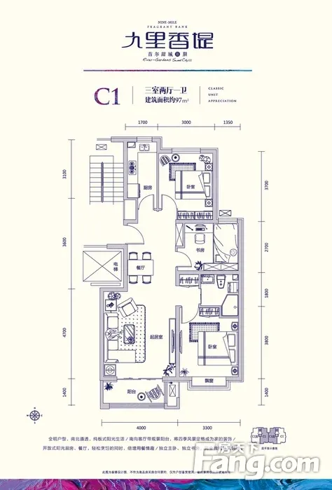 户型齐全,主打南北通透,户型方正三居