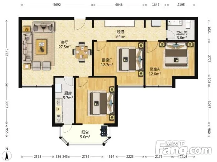 户型齐全,主打户型方正,明厨,双卧朝南,主卧朝南,客厅朝南二居