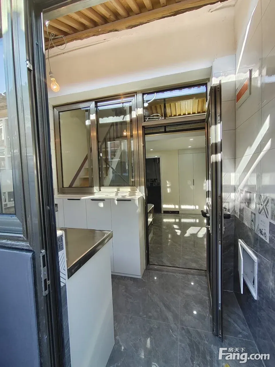 房子是平房,为四合院中的独立一间住房,独立水电,可以居住,有独立的厨、卫空间。