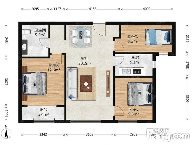 3室1厅1卫