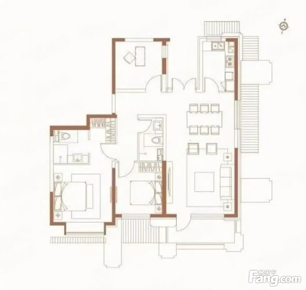 富兴首府户型主要有144平-156平的南北通透,客厅朝南,开放厨房的三居 、189平-189平的南北通透,客厅朝南,U型厨房的四居 。