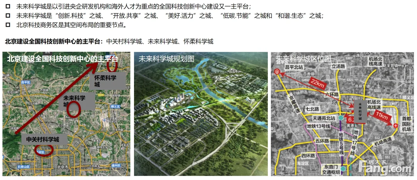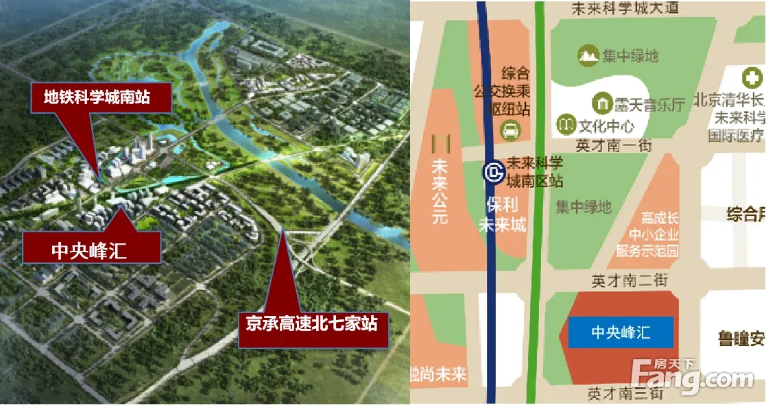 【项目位置】 京承高速定泗路出口西南侧500米 昌平区未来科学城东路与英才南三街交叉口西北角(北五环外) 距离正在建设的17号线“未来科学城南站”距离300m(2023年开通) 机场北线高速定泗路出口500米,距离首都机场15km,驱车20可达