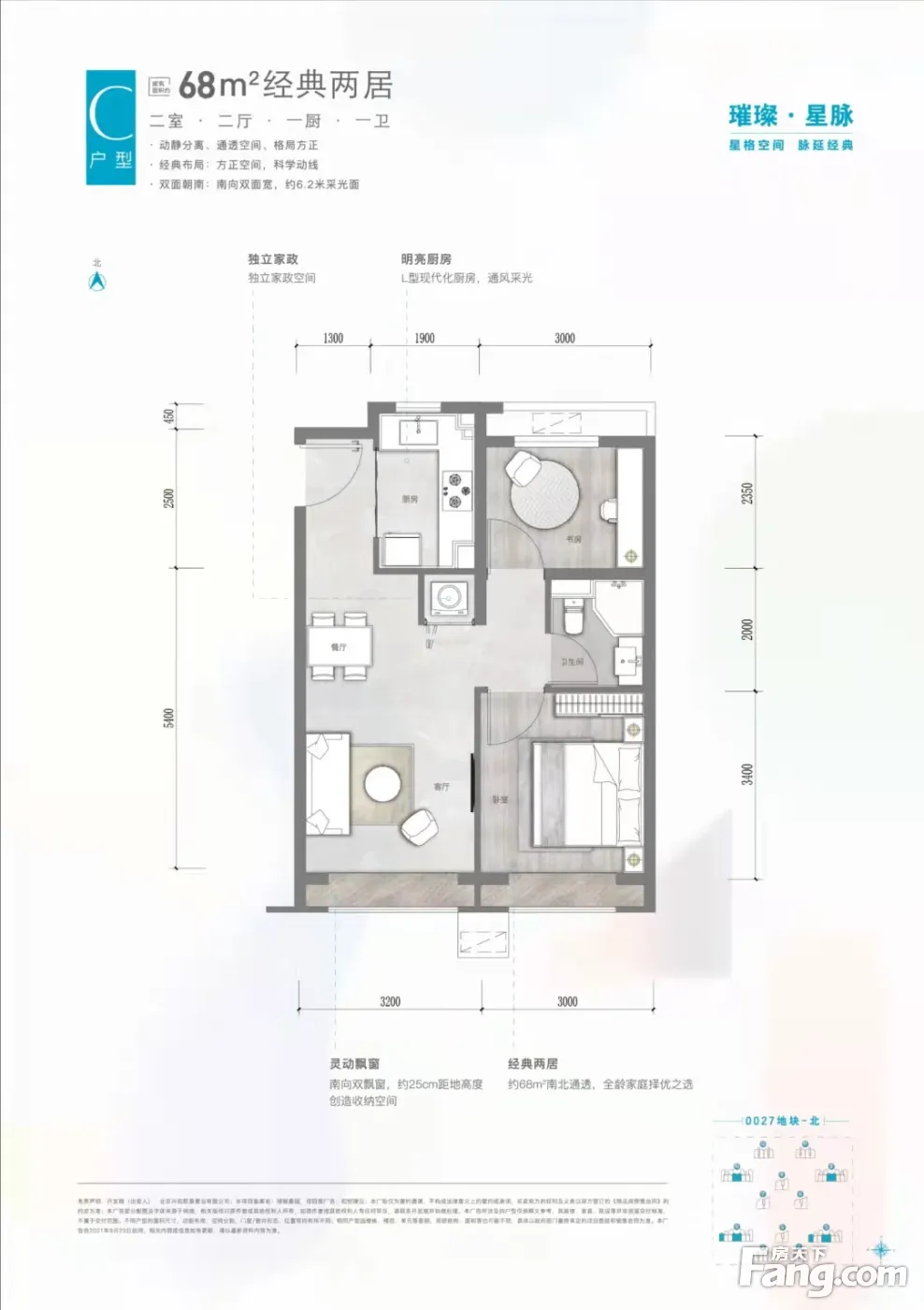 户型齐全,主打南北通透,动静分离,客厅朝南,卧室朝南二居