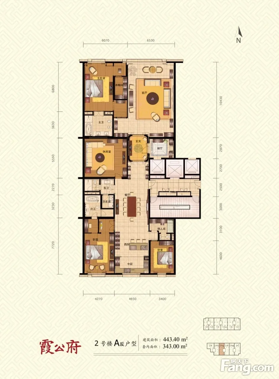 霞公府是全北京位置好的项目之一,在故宫东侧800米,身份地位的象征。 整个社区,分南北两栋楼,只有74户,每一户都是珍品。 内城限高,一共为8层,实际是7层,首层为入住大堂。 面积350平-591平不等,目前还有10套一手房源在售,主力户型为445平4居室。 报价6206万起