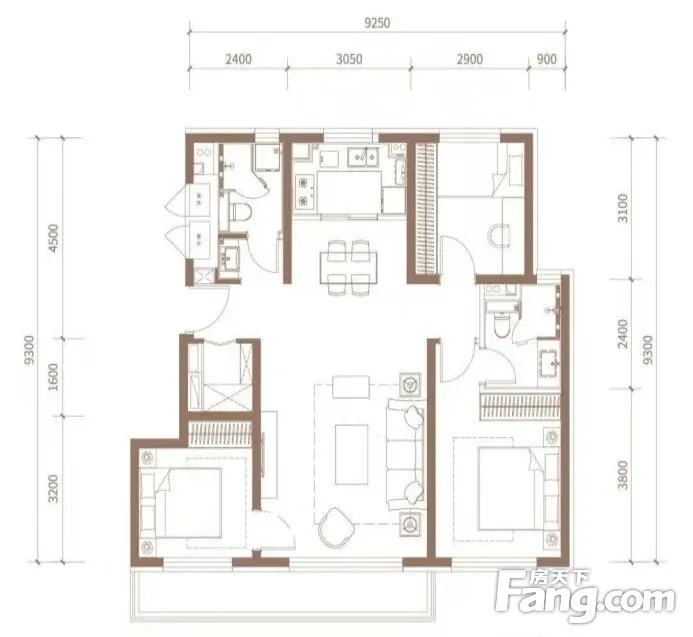 户型齐全,主打户型方正,采光充足三居