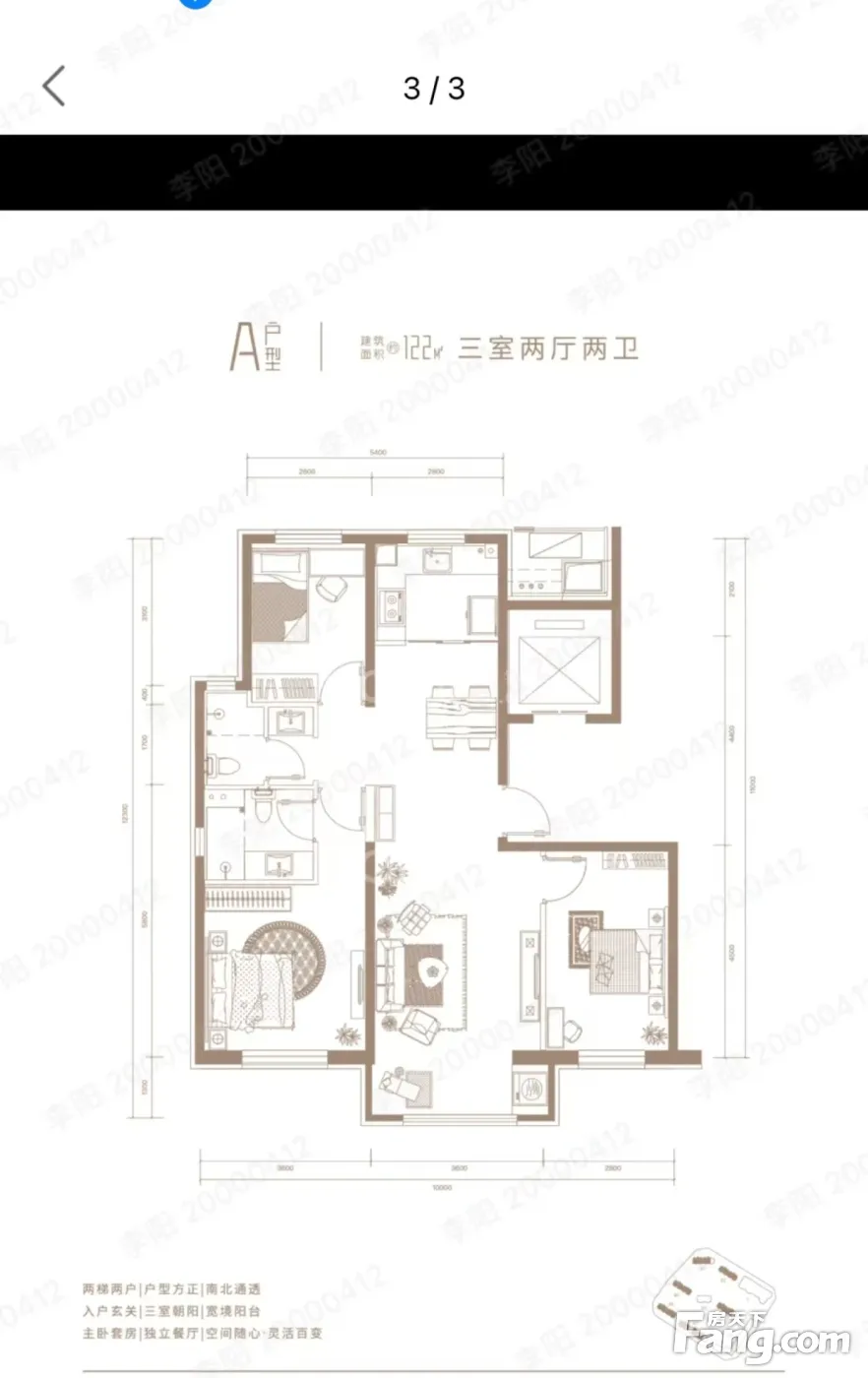 户型齐全,主打客厅朝南,主卧朝南三居