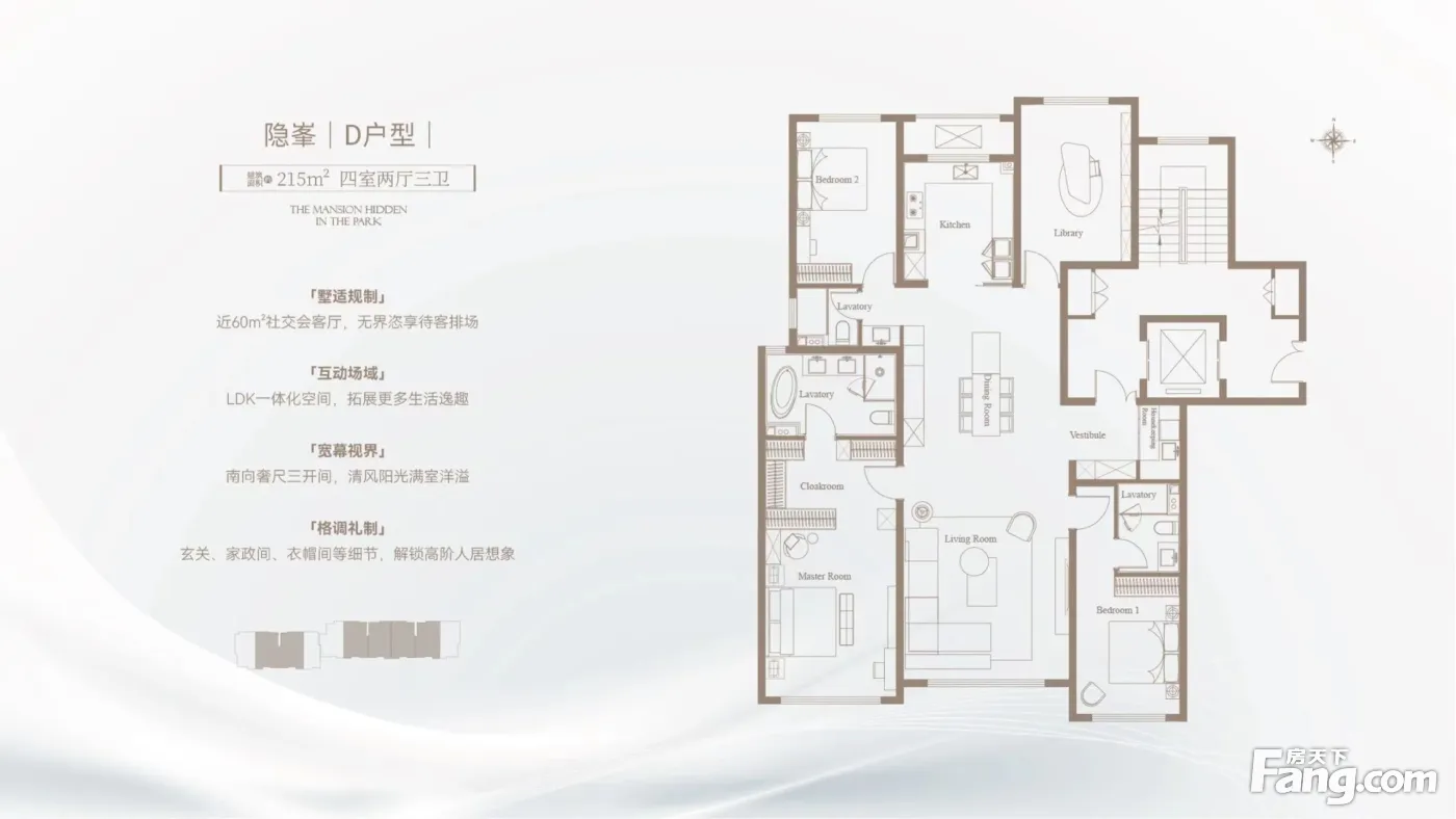 房屋拥有相对宽松的尺寸,布局通透,动静分离,设计豪华1861.0.5.0.8511