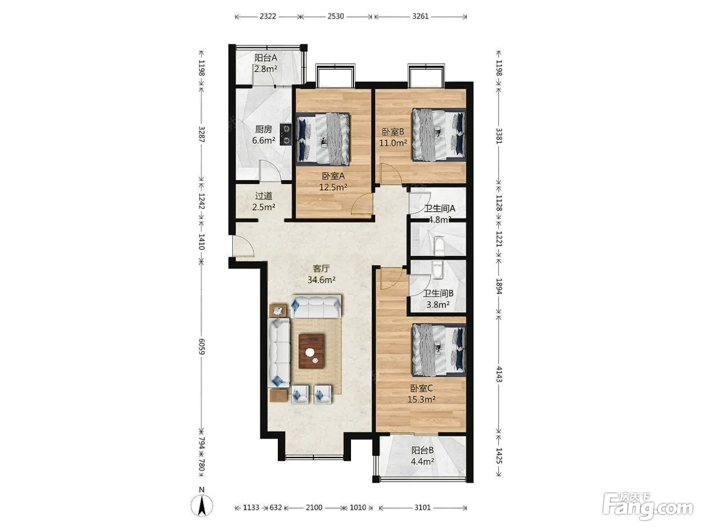 3室1厅2卫