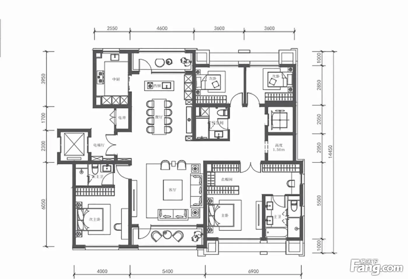 房屋拥有相对宽松的尺寸,布局通透,动静分离,设计豪华