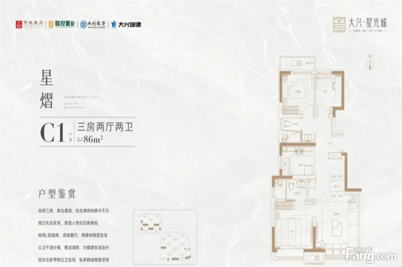 大兴·星光城户型主要有86平-113平的南北通透,客厅朝南的三居 、124平-166平的南北通透,客厅朝南的四居 。