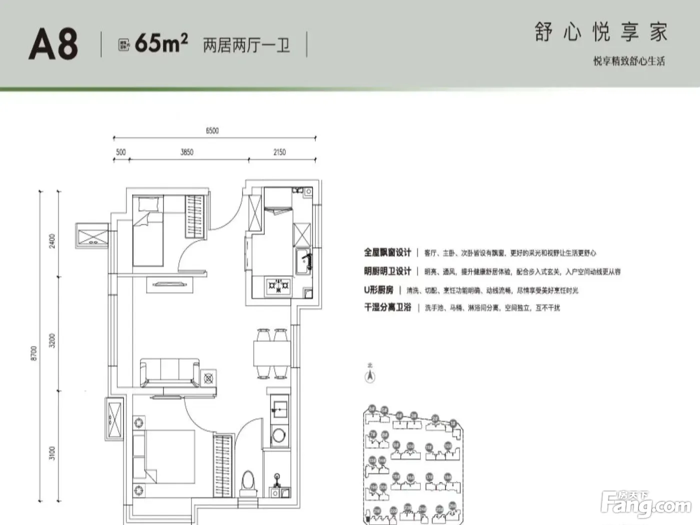 户型齐全,主打南北通透,全明格局,户型方正,动静分离,高附赠空间,采光充足二居