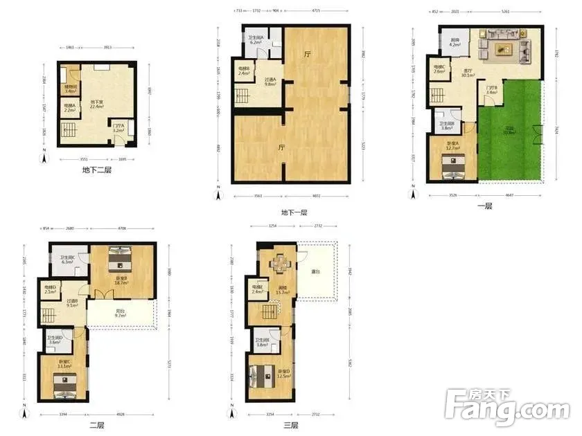1万科独栋合院 精装修 地上三层 地下两层 上下楼都有电梯。 2一层有老人房 厨房 餐厅 客厅 卫生间 活动区域 3二层有两个卧室两个卫生间 每个人都有独立的空间 4三层有一厅一居室一个卫生间 还有大可以喝茶纳凉的好的方 -1层式设计的娱乐区 隔音效果好 不打扰邻居 -2层是车库两个车位居家使用极其方便