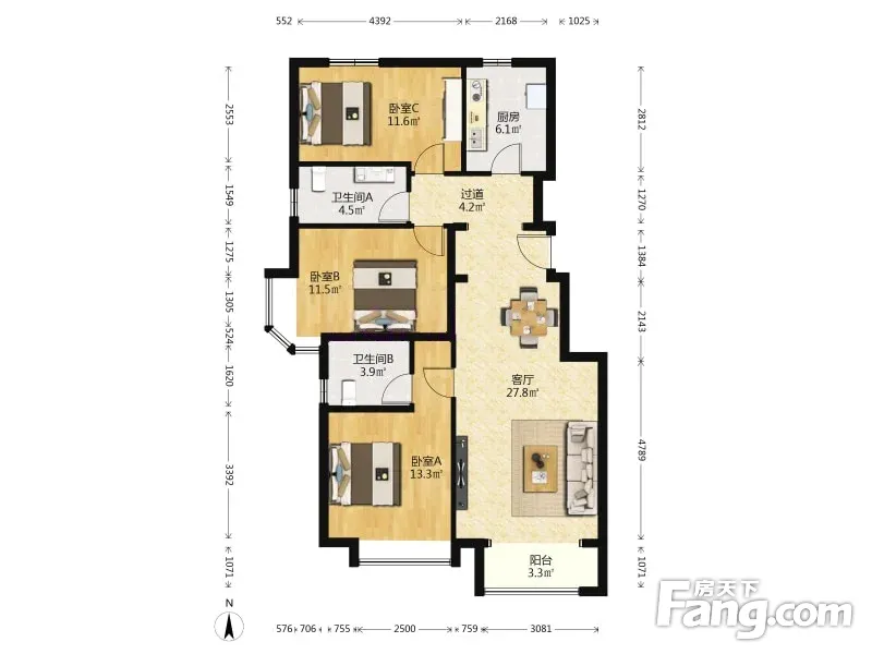 3室1厅2卫
