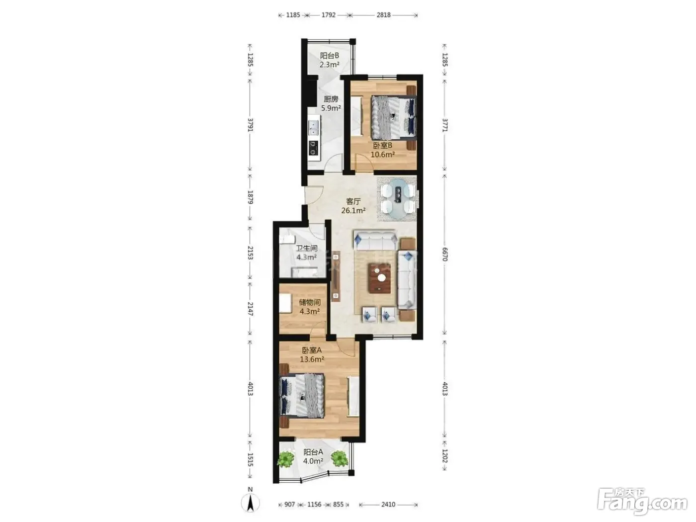户型齐全,主打户型方正二居