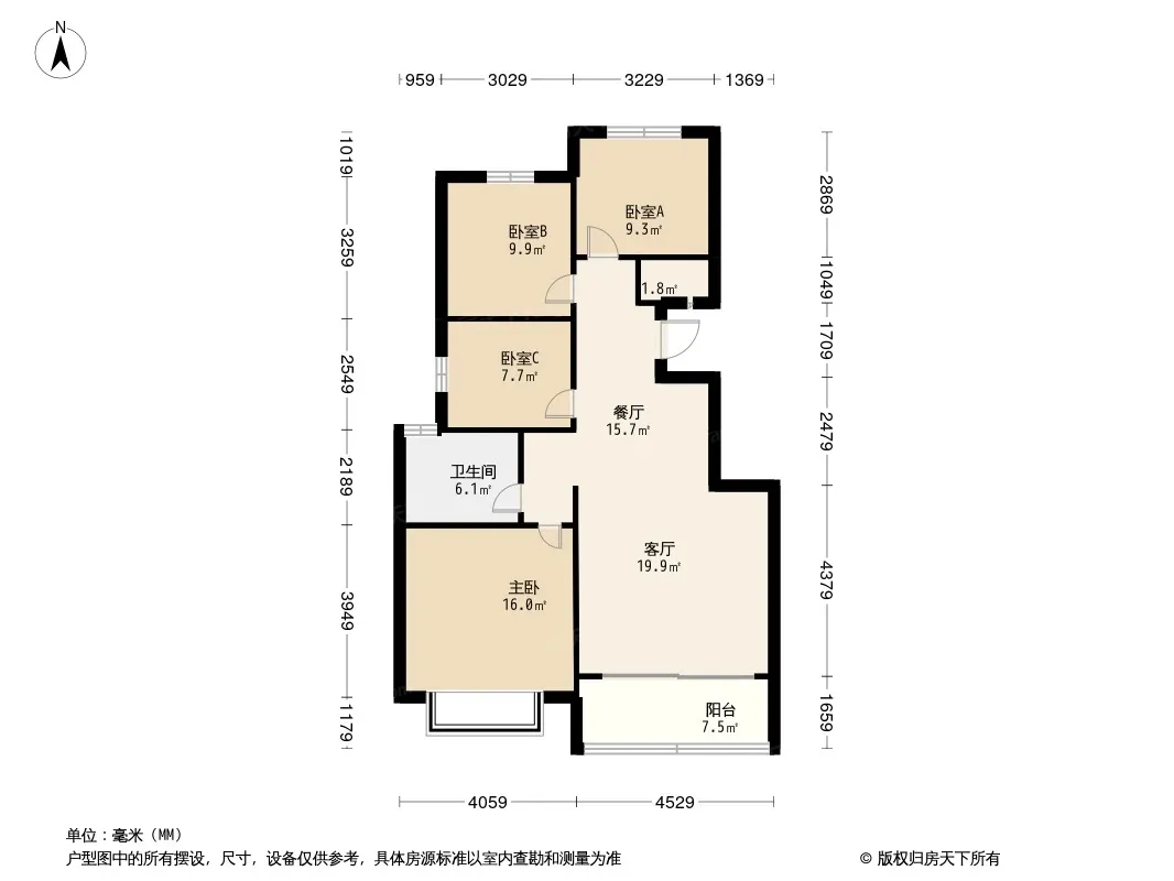 户型齐全,主打南北通透,全明格局三居