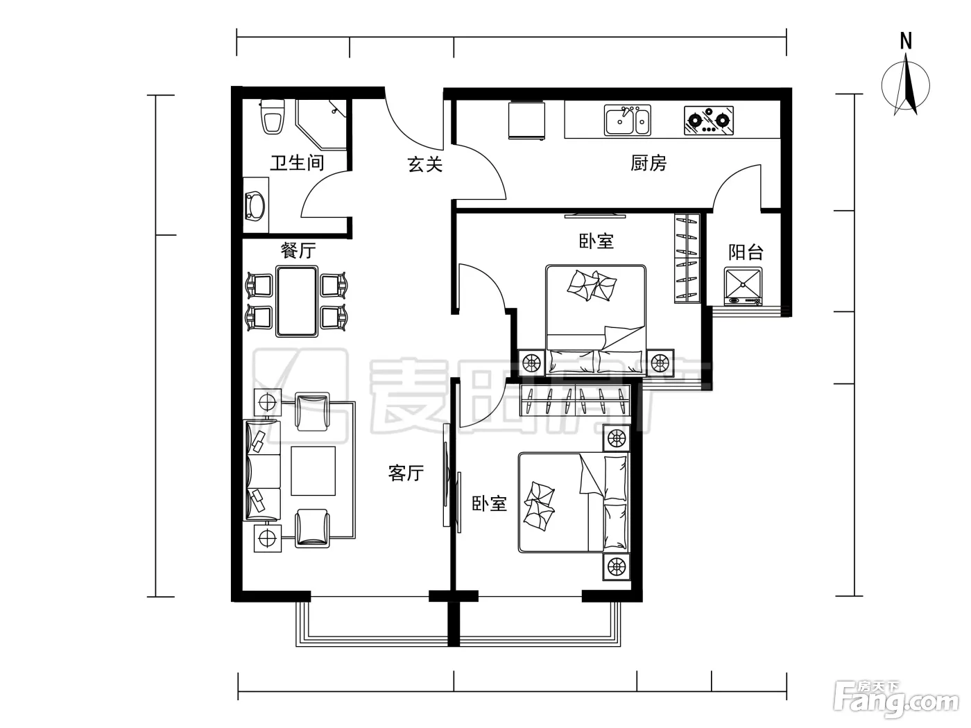 户型齐全,主打双卧朝南二居