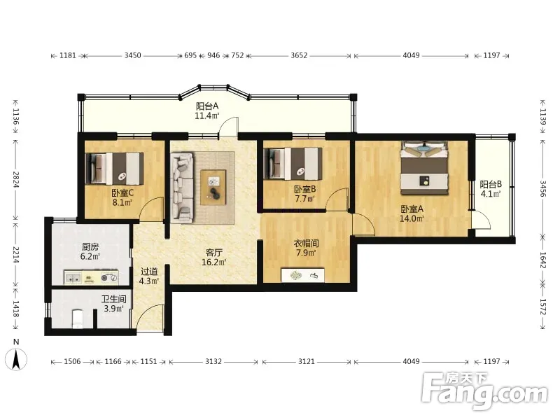 地铁古城家园 3室1厅 105.03平