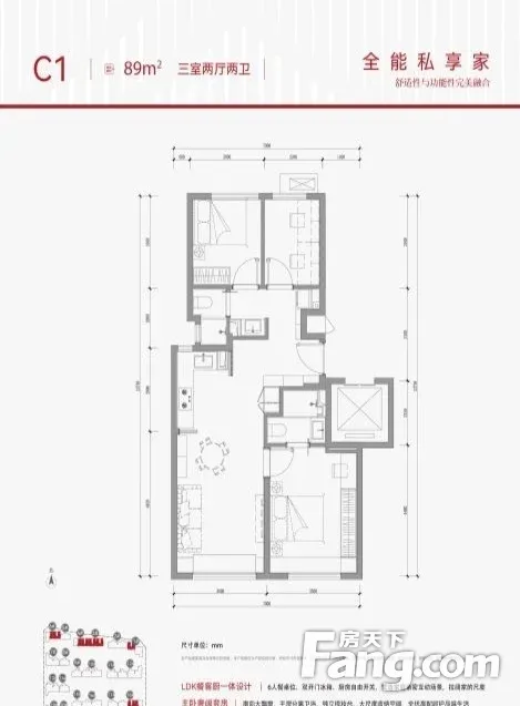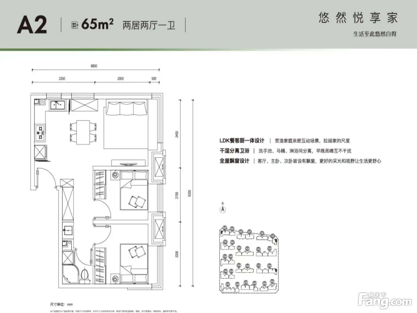 户型齐全,主打南北通透,全明格局,户型方正,动静分离,高附赠空间,采光充足二居
