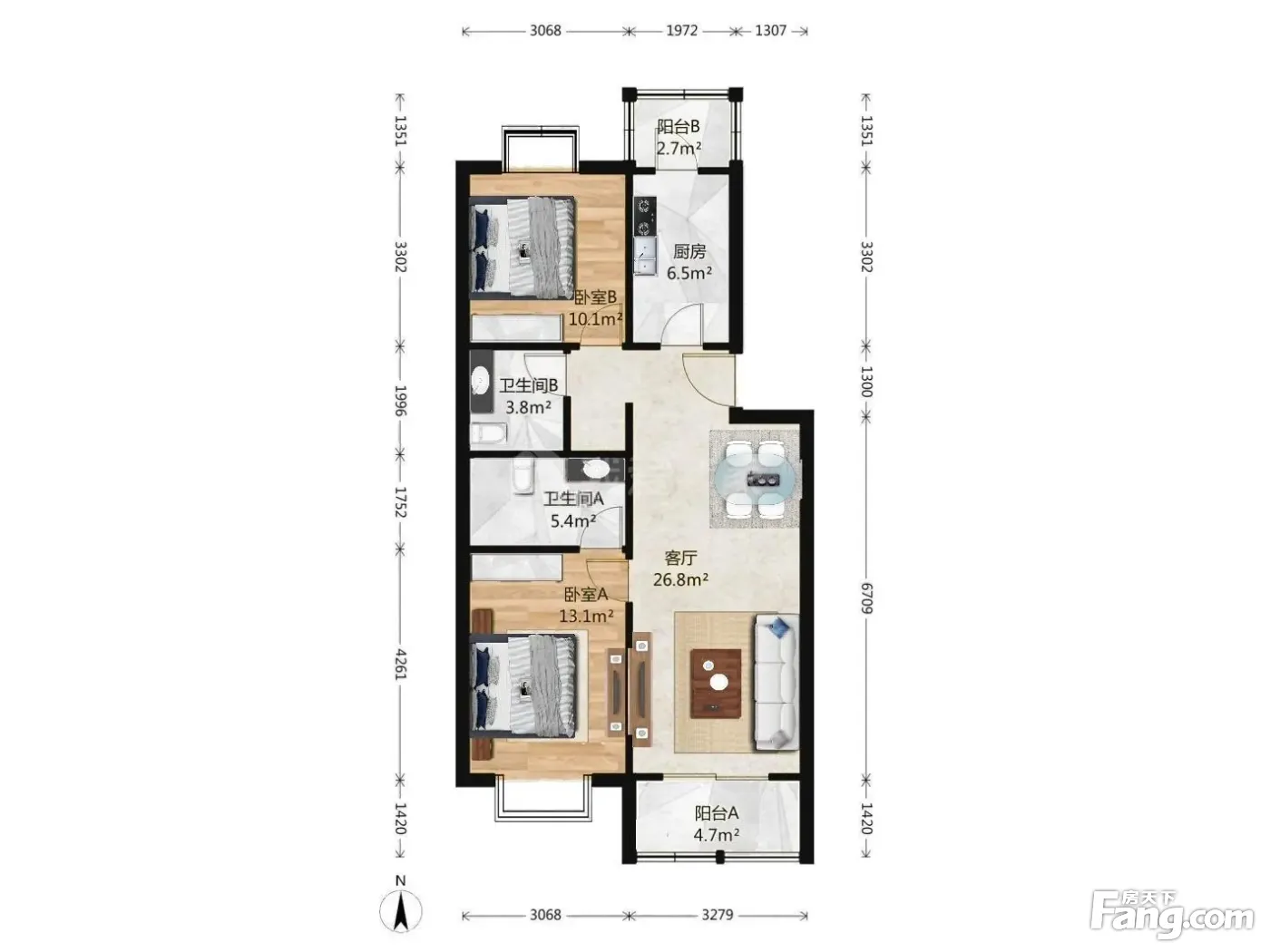 2室1厅2卫