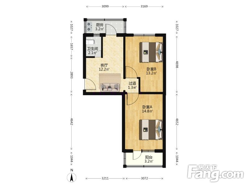 模式口南里 2室1厅 61.05平
