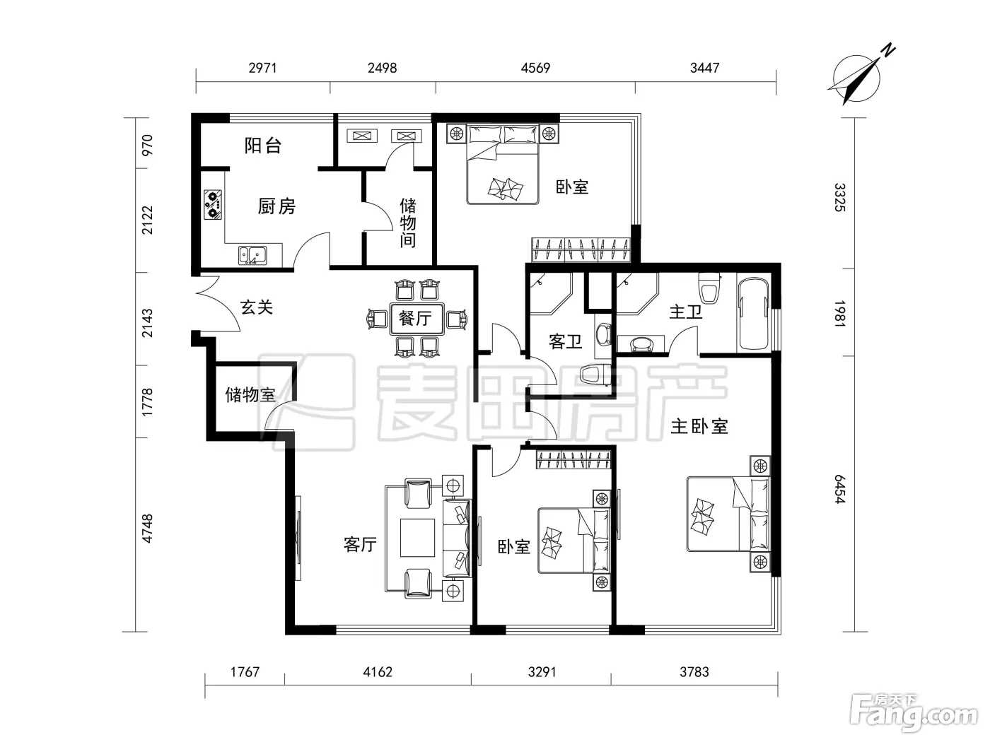户型齐全,主打户型方正,独立衣帽间,客厅朝南,主卧朝南三居