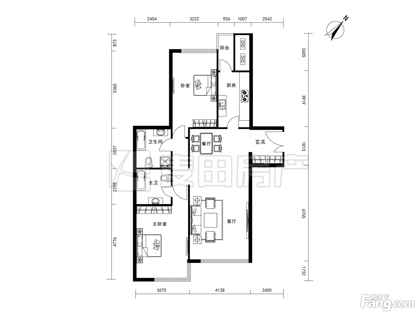 户型齐全,主打户型方正,独立衣帽间,客厅朝南,主卧朝南三居