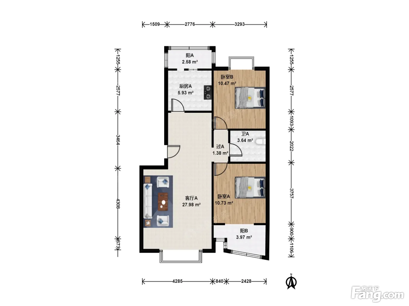 户型齐全,主打客厅朝南二居