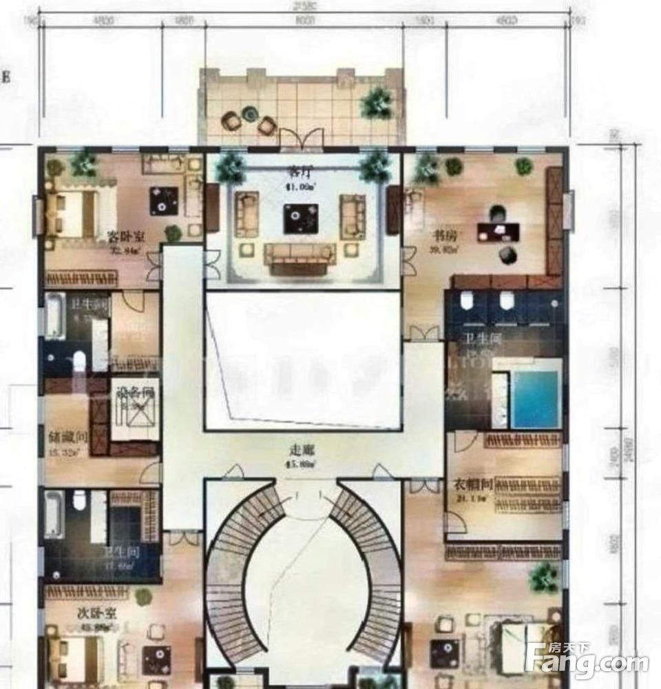 图片为设计样图,仅供参考! 本房位于五期的北区,离社区的西门比较近。西边户的位置私密性也比较好。 ?户型描述: 1、本房户型方正,原始4居室的设计,,开发商做好的入户双弧形楼梯给您归家仪式感; 2、入户层有接待厅、西北向客厅挑空,一层有1间卧室,直观私家;西侧无遮挡,1000平私家 3、二层有3间卧室,均为套房设计; 4、私家层有1间卧室,两间阿姨房; 5、地下4个车位,地上还有两个车位,停车方便。 6更多别墅需求请您直接致电我的私塾顾问