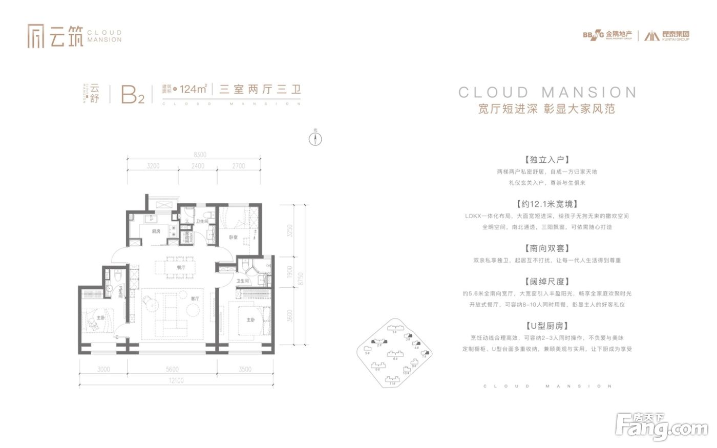 金隅昆泰云筑户型主要有114平-124平的南北通透,客厅朝南的三居 、123平-123平的南北通透,客厅朝南的二居 、152平-152平的南北通透,客厅朝南的四居 。
