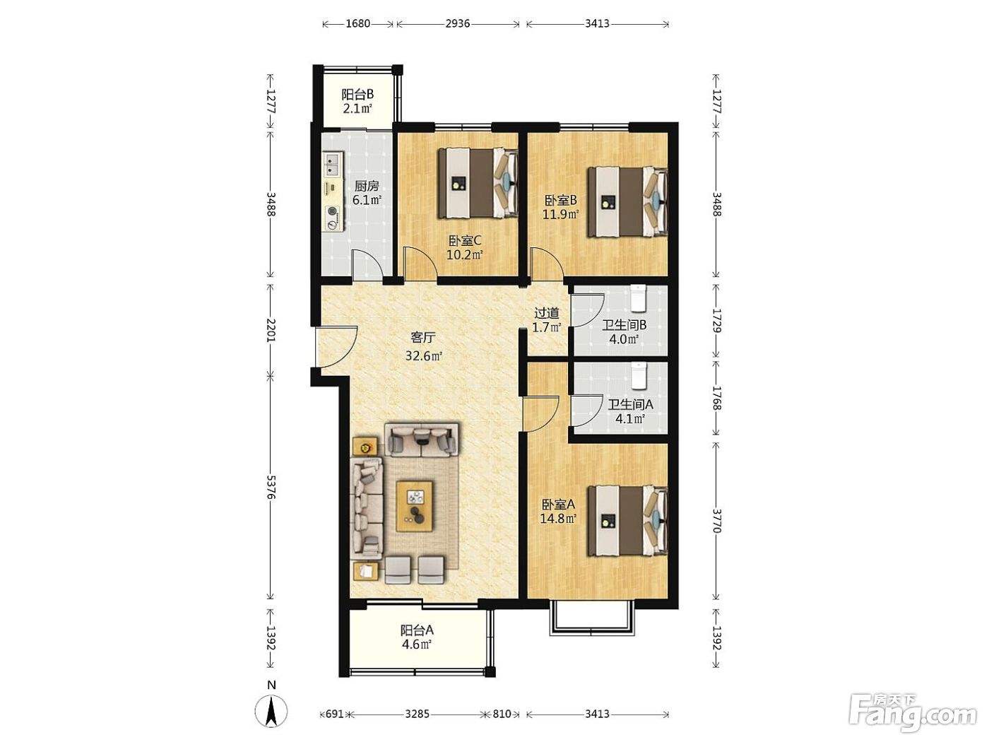 3室1厅2卫