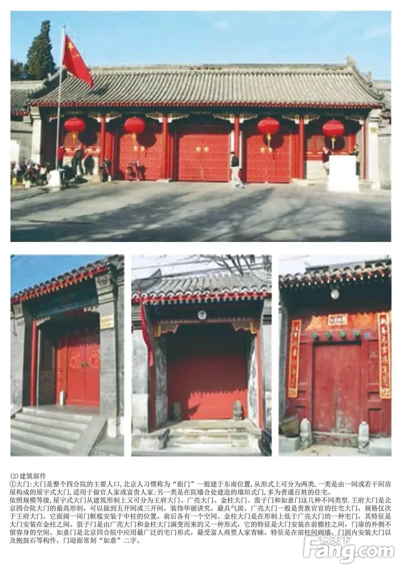 四合院建筑,是中国古老、传统的文化象征。四代表东西南北四面,“合”是合在一起,形成一个口字形,这就是四合院的基本特征。四合院建筑之雅致,结构之巧,数量之众多,当推北京为最。北京的四合院,大大小小,星罗棋布,或处于繁华街面,或处于幽静深巷之中;大则占地几亩,小则不过数丈;或独户,或数户、十几户合居,形成了一个符合人性心理、保持传统文化、邻里邻外关系融洽的居住环境。它形成了以家庭为中心,街坊邻里为干线,社区地域为平面的社会网络系统。另外四合院也有包在一起的意思。
