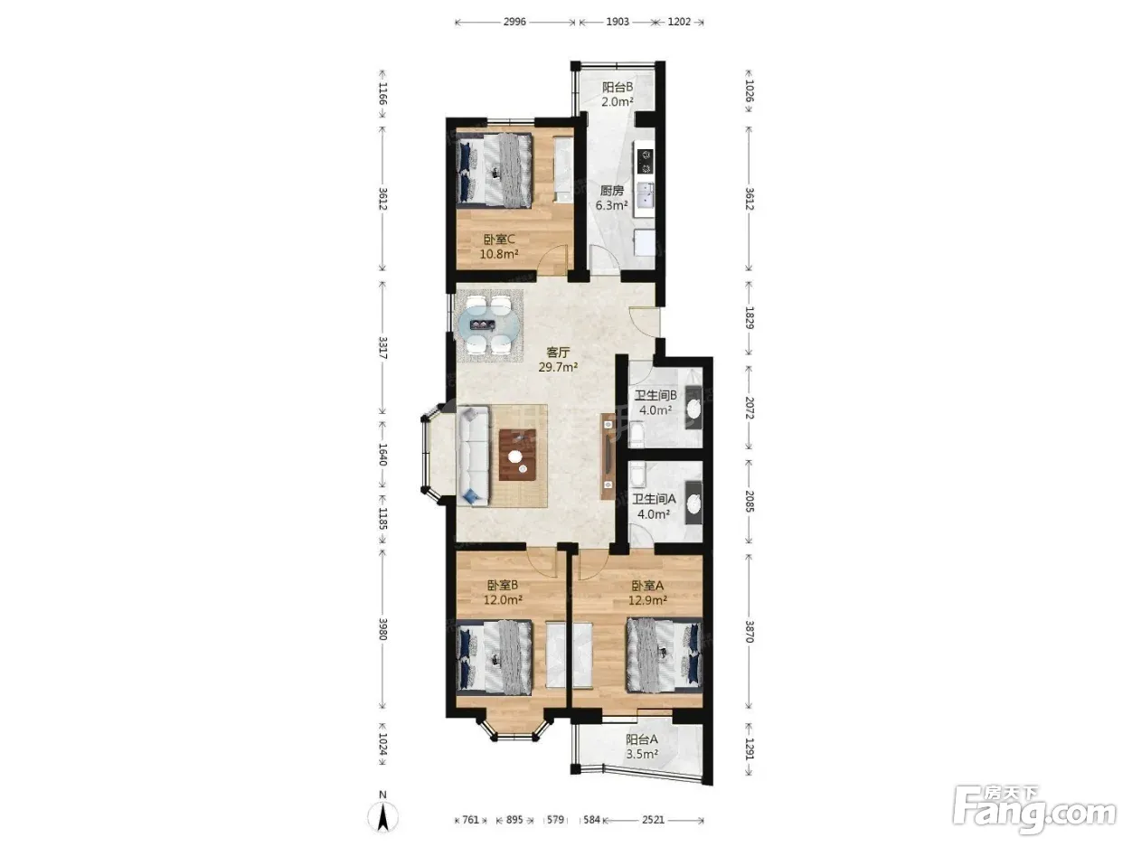 3室1厅2卫