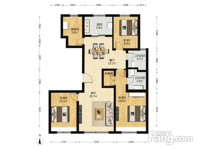 房屋拥有相对宽松的尺寸,布局通透,动静分离,设计豪华