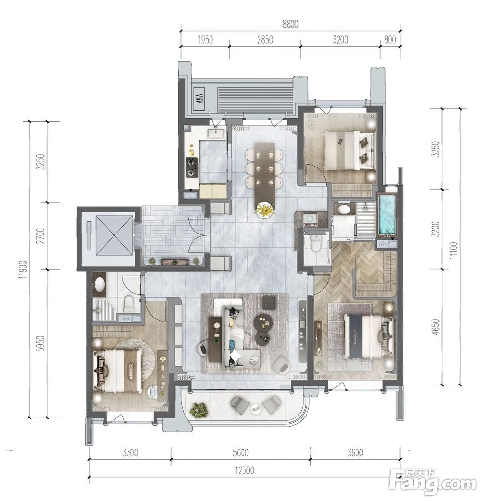房屋拥有相对宽松的尺寸,布局通透,动静分离,设计豪华