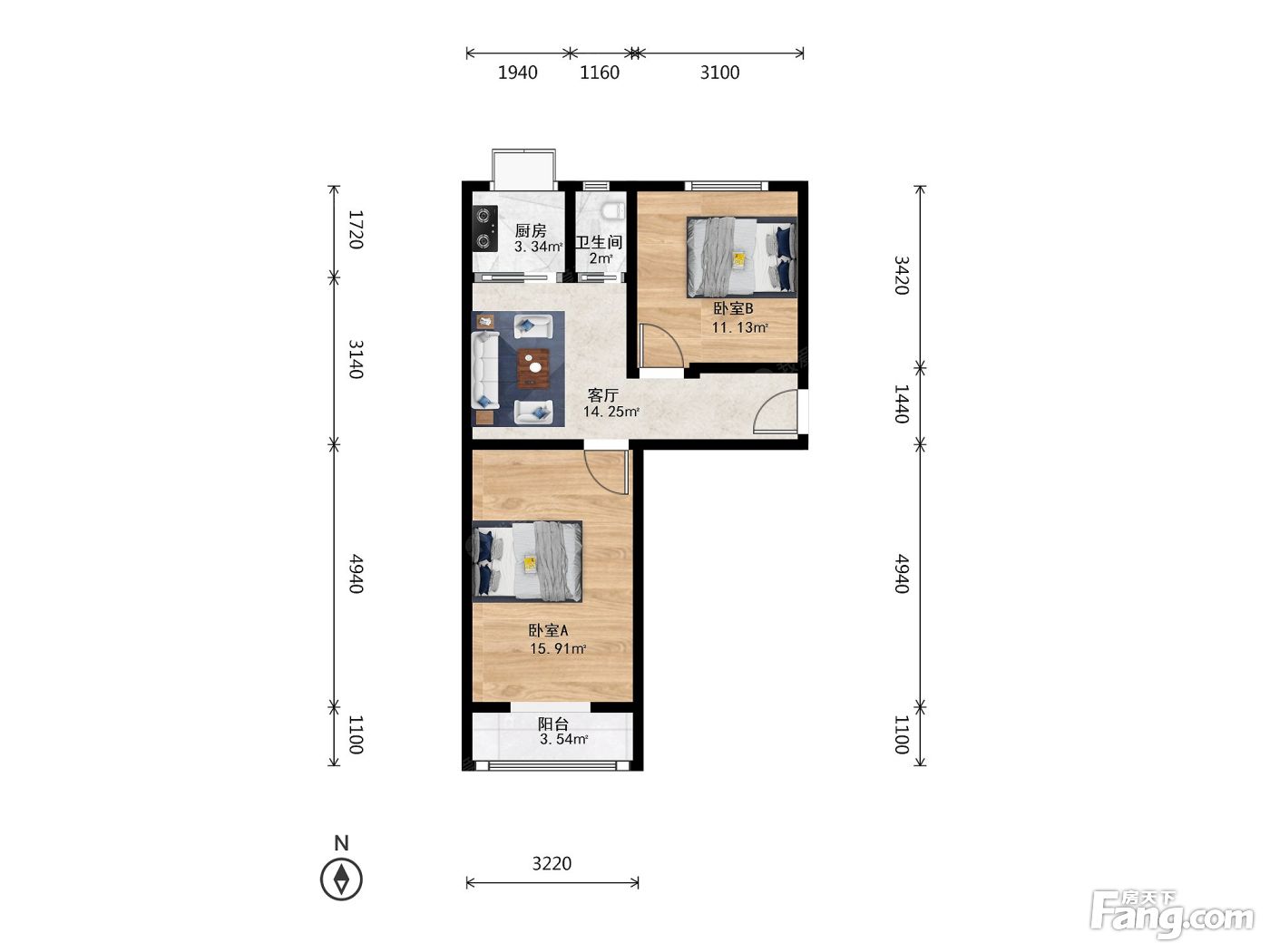 户型齐全,主打户型方正,明厨,主卧朝南二居