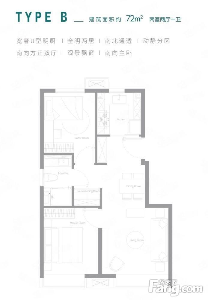 房屋户型方正,景观布局合理,设计实用,空间舒适,格局优越,采光通风良好