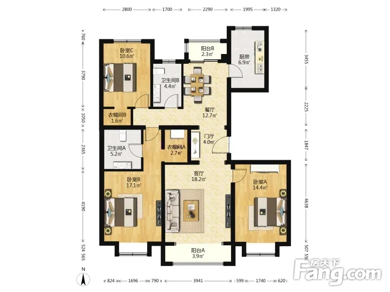 户型齐全,主打动静分离,采光充足三居