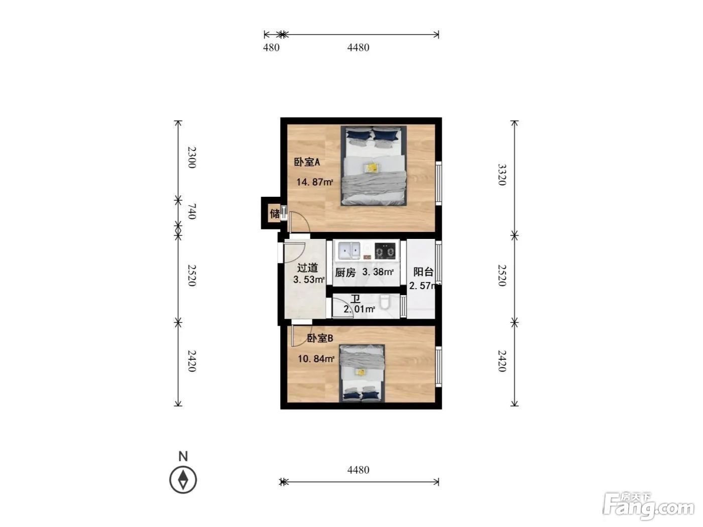 户型齐全,主打双卧朝南,主卧朝南二居