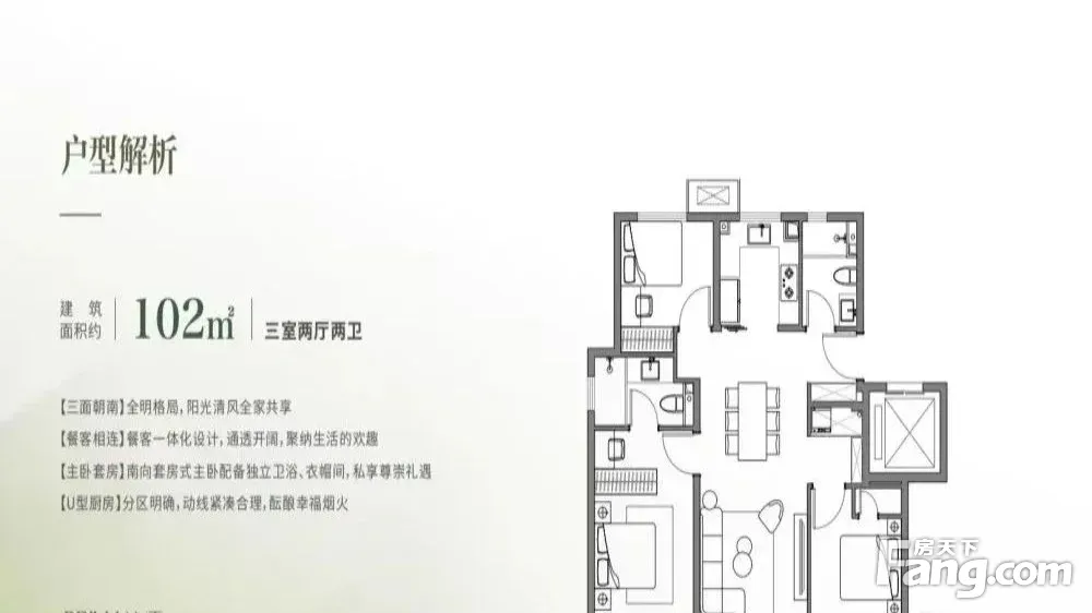 户型齐全,主打全明格局,主卧带卫,明厨明卫,干湿分离,餐客分离三居