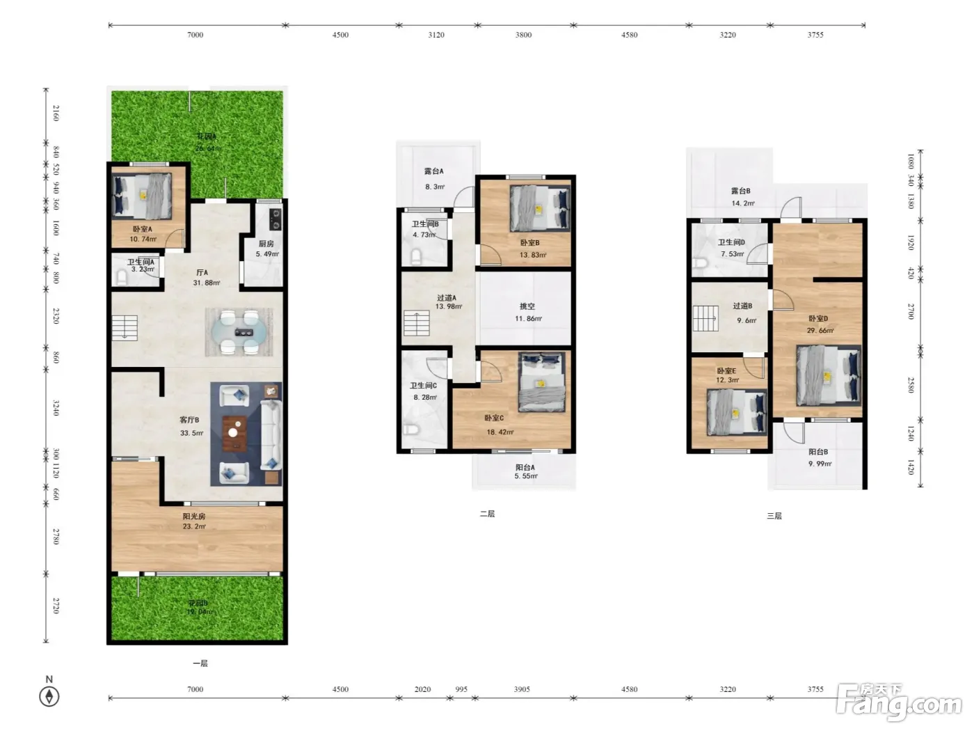 纯地上三层,7米面宽,一层带长辈房,6.7米挑空,双主卧室!