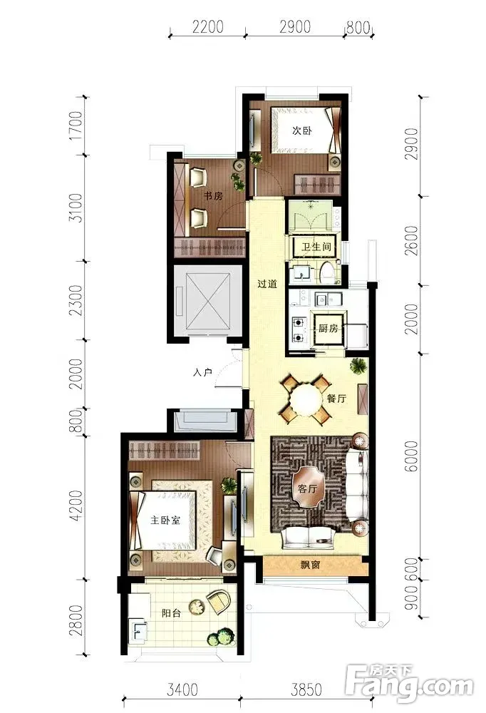 户型齐全,主打全明格局,户型方正三居